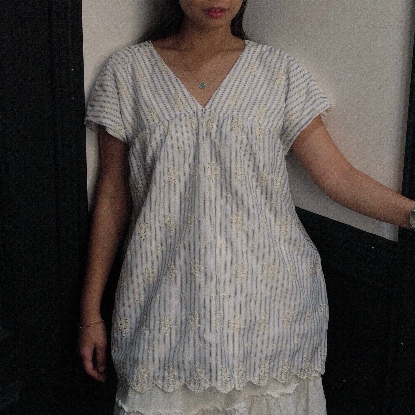 Feeqha is a v neck, boxy top with scallop trimmings. It’s an embroidery top & it comes in different colours with the following measurements ;